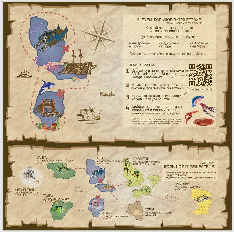 Общая концепция игрового пространства квартала Eleven в Академическом районе — Большое путешествие.