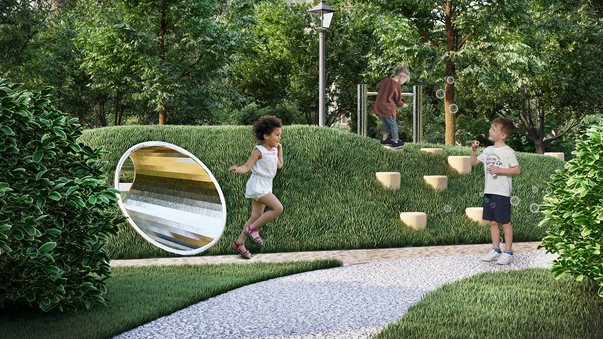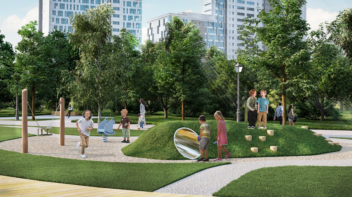 Концепция игрового пространства с геопластикой в центральной части площадки.