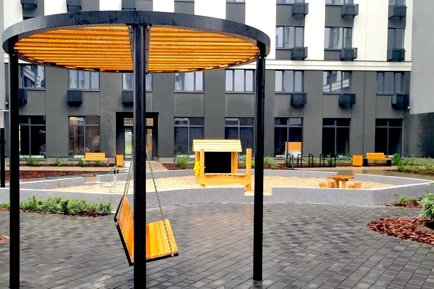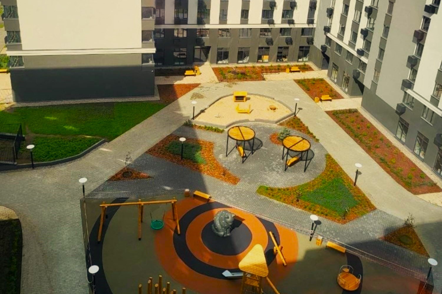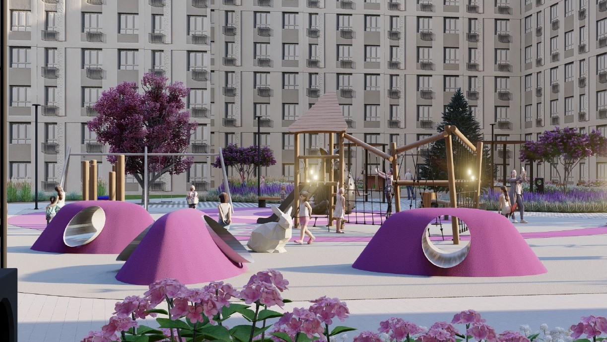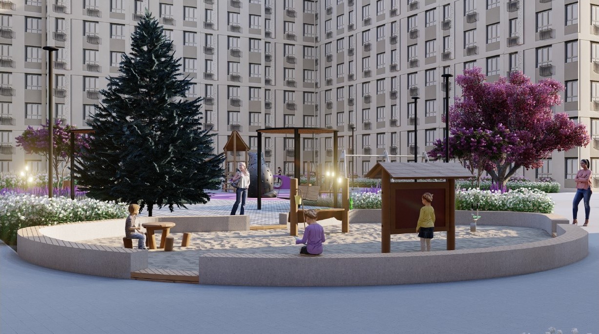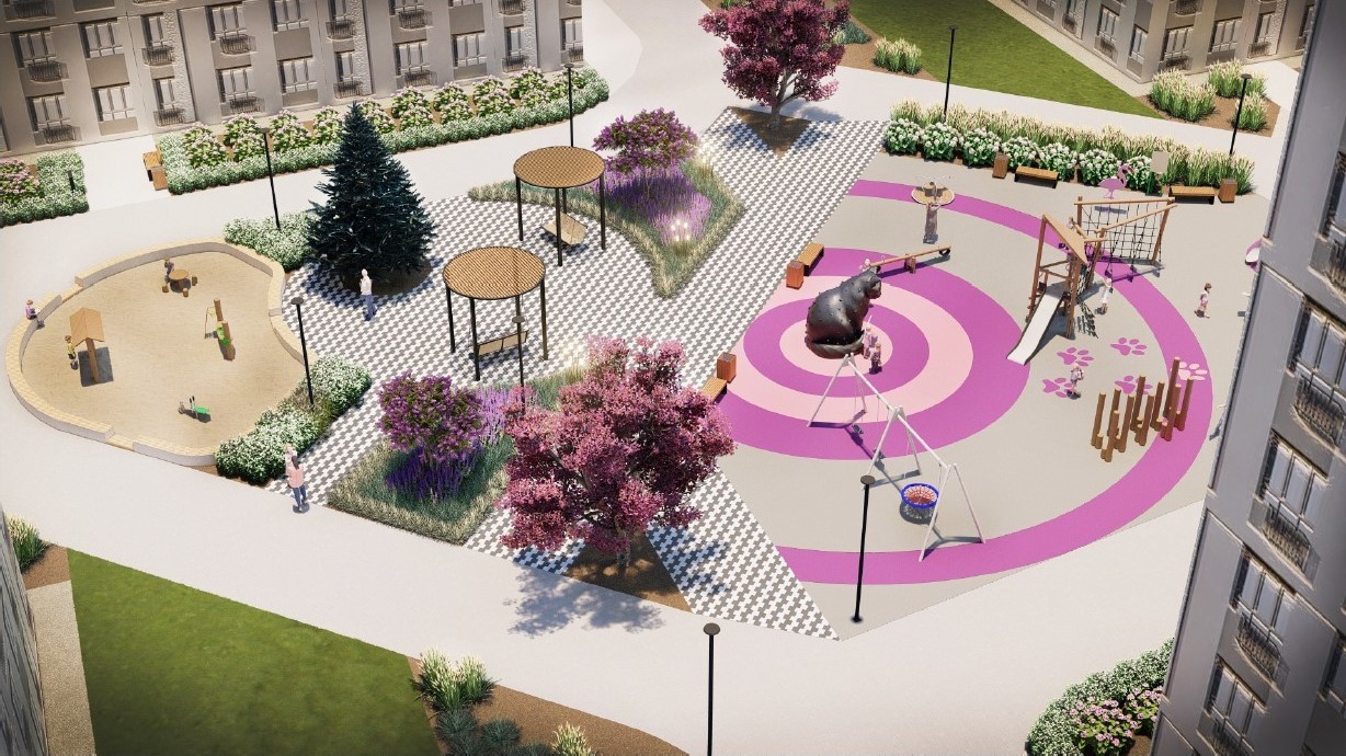 Паритет Девелопмент реализовал его во дворе своего нового жилого комплекса. (Проект выполнен без авторского надзора).