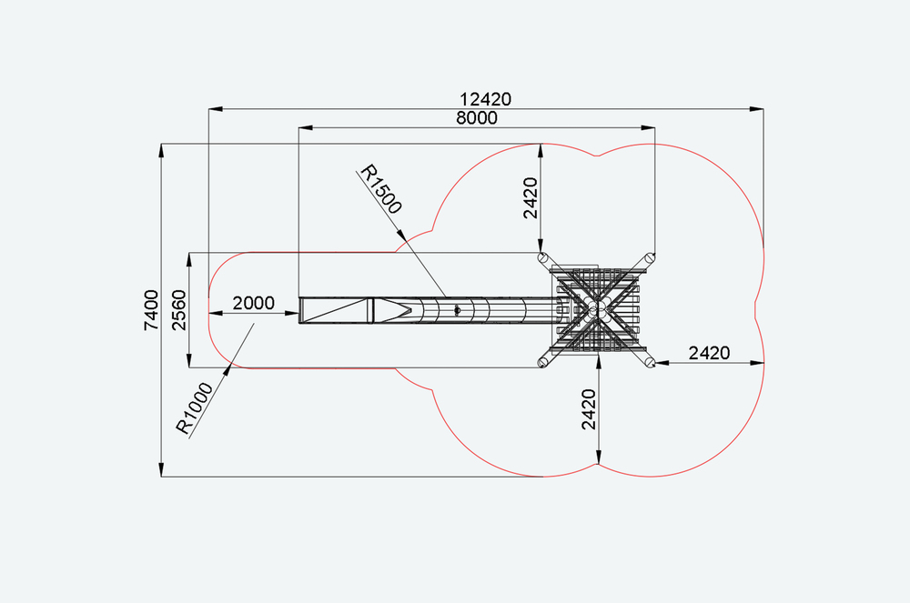 | Зона безопасности | 12420 х 7400 мм |