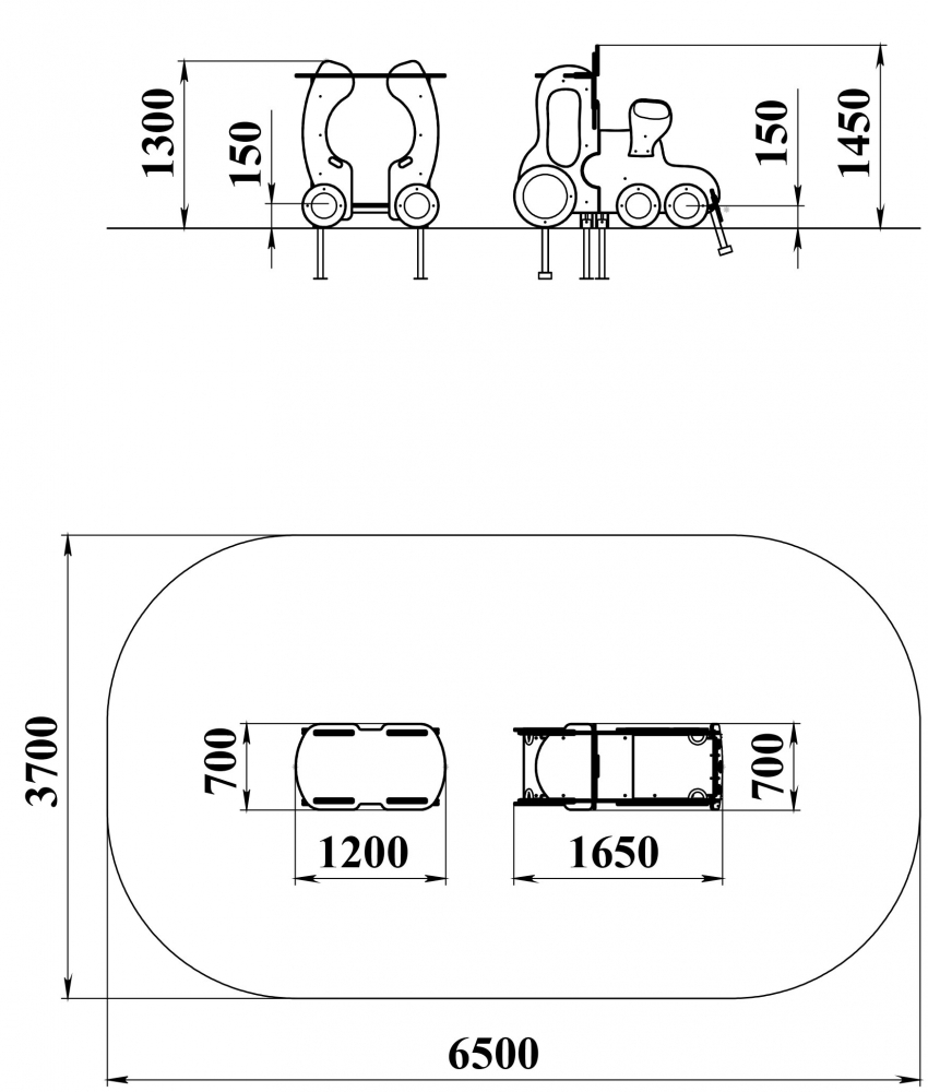 Комплекс состоит из паровозика с вагоном, крыш, ограждений в виде кузовных деталей паравоза с ручной художественной росписью в стиле граффити, лавочек, ручек, декоративных фанерных элементов в виде колес и трубы паравоза.
