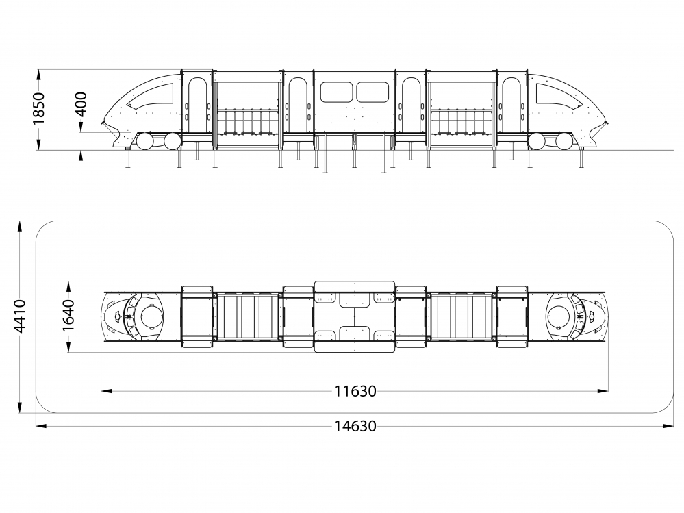 Комплекс с ручной художественной росписью стилизован в форме поезда сапсан, состоит из трёх отсеков, разделённых подвесными качающимися мостами.