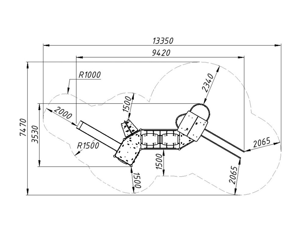 | Зона безопасности | 13350 x 7470 мм |