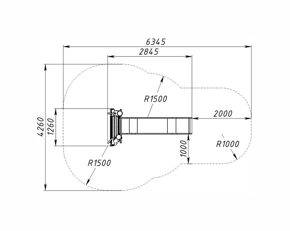| Зона безопасности | 6345 х 4260 мм |