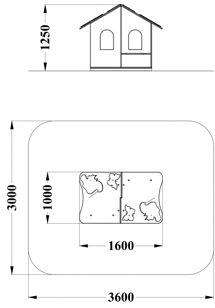 Домик состоит из крыши, фанерных ограждений, металлокаркаса пола, площадки, скамеек и декоративных фанерных элементов с ручной художественной росписью.