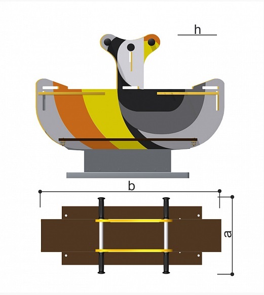 Качалка для тематических игр, предназначена для детей в возрасте от 2 лет, двухместная. На фигурную вставку при помощи УФ-печати нанесено изображение.