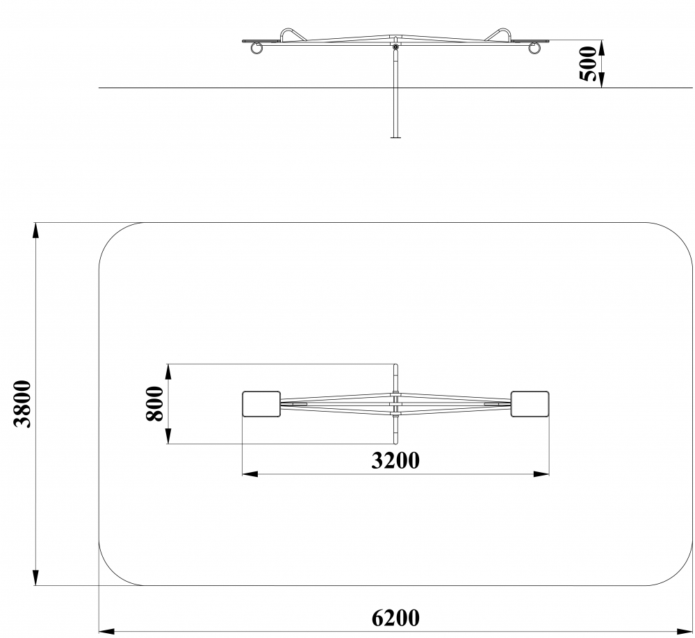 Качалка-балансир состоит из металлического каркаса, фанерных сидений и амортизирующих демпферов из армированной резины.