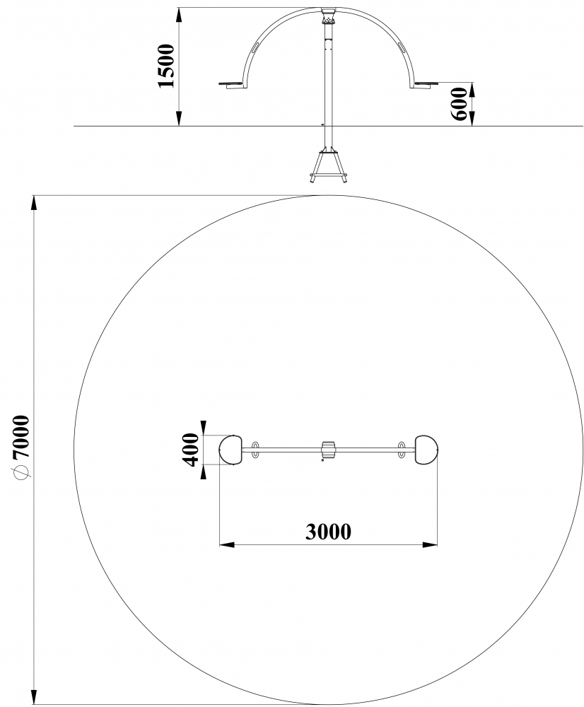 Качалка-карусель состоит из металлического дугообразного коромысла с фанерными сидениями по краям и центральной несущей стойки. Коромысло крепится болтовым соединением к особому не разрушаемому шарниру, который в свою очередь крепится к несущей стойке. Качение производится при помощи особого шарнира, а вращение вокруг своей оси производится с помощью подшипников установленных в несущей стойке. При работе шарнира исключены места трения металлических компонентов шарнира, что в свою очередь влияет на долговечность, сокращает эксплуатационные расходы и позволяет шарниру работать практически без шума.