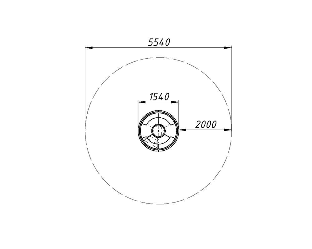 Конструкция карусели представляет собой вращающуюся круглую платформу, с прикрепленной спинкой и сплошными сидениями. Изюминка конкретной модели в круглом поручне, расположенном в центральной оси, при помощи которого дети смогут сами себя раскручивать. Такой забавный аттракцион полезен в укреплении вестибулярного аппарата, развитии координации движений и умения удерживать баланс и равновесие. Материалы, используемые при изготовлении изделия устойчивы к любым погодным условиям.