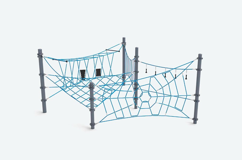 Большой канатный комплекс позволяет детям учиться и обучать друг друга новым навыкам, заводя друзей во вдохновляющей атмосфере. Канатные сетки в разных положениях помогают развить у детей чувство равновесия и координацию, что является основополагающим для овладения ряда жизненных навыков в будущем.