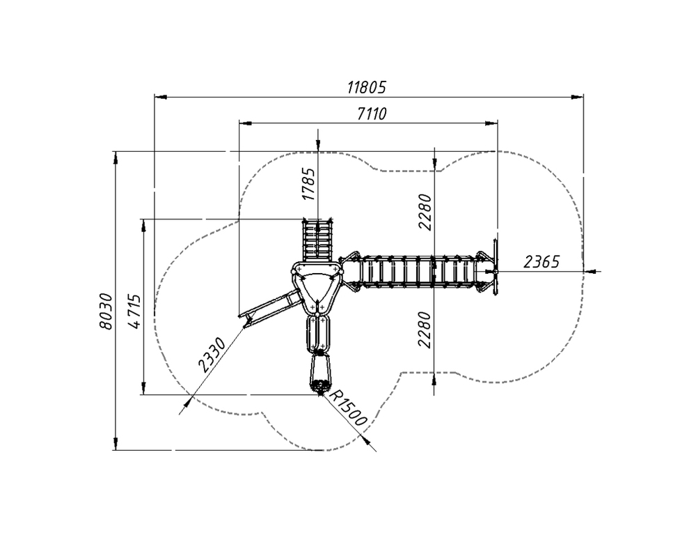Функциональный комплекс, состоящий из сложных спортивных элементов: сетка, изогнутый мостик, рукоход.