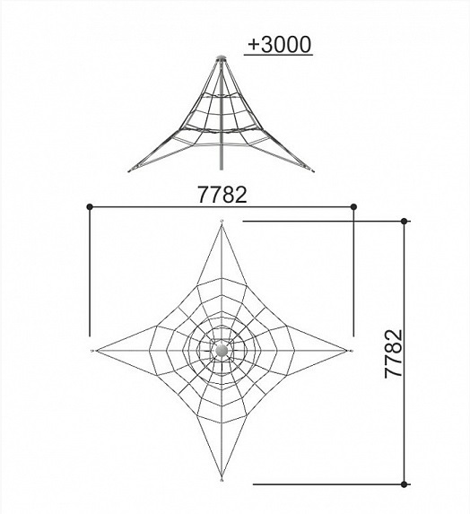 Лаз представляет собой конструкцию в виде пирамиды, состоящего из стойки, к которой должна крепиться канатная конструкция. Канатная конструкция крепится к земле с помощью талрепов для регулирования натяжения канатов.
