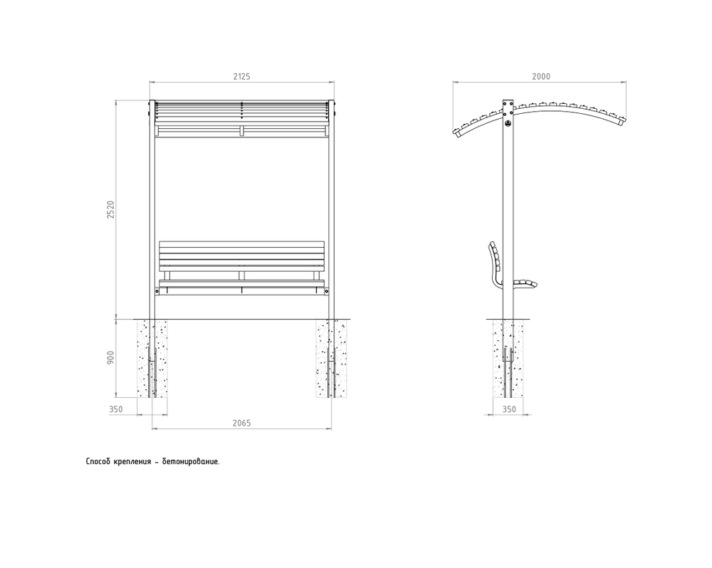 Пергола с навесом из деревянных брусьев. Навес прикреплен к металлическим профилям 6х12 см. Очень удобная и комфортная конструкция, которая не займет много места во дворе или на любой другой территории.