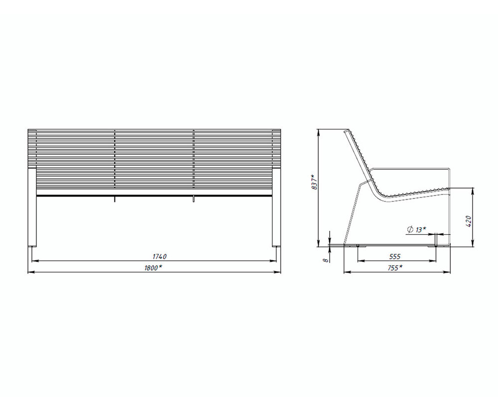 Есть модели из сосны и полностью из металла — деревянные выглядят уютно, а металлические — это настоящий острый и одновременно лаконичный стиль. Готовые скамьи и кресла впишутся в любое городское пространство.