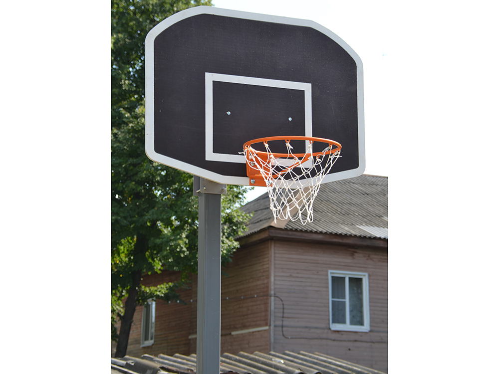 Стритбольная стойка представляет собой металлическую сварную конструкцию, состоящую из стойки, щита и баскетбольного кольца с сеткой.