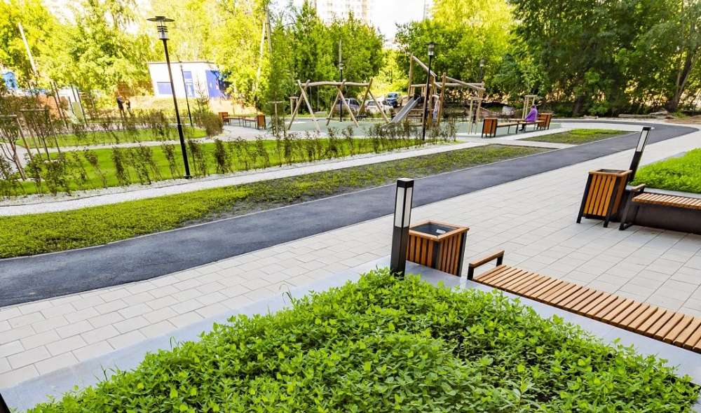 Главная страница / Реализованные объекты: дворовые и общественные пространства / Благоустройство дворов / ЖК Тихомиров г.Екатеринбург